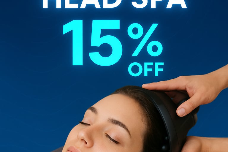 Descontos exclusivos de 15% em todos os nossos vouchers Head Spa. Oferta válida por tempo limitado.